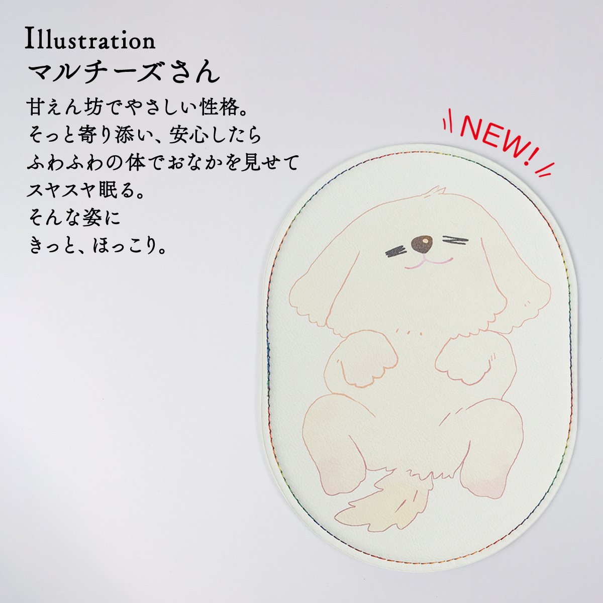 イラストは既存の「シバケンさん」「パグさん」「ビーグルさん」「クロシバさん」「プードルさん」「クロチワワさん」に加え、「フレブルさん」「ポメラニアンさん」「マルチーズさん」「シュナウザーさん」「ダックスさん」「ヨーキーさん」が加わり12パターンとなりました。あなた好みの犬さんをお選びいただけます。