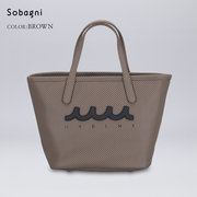 Sobagniのエシカル素材(エシカル合皮)に施されたパンチング加工がバックに立体感を生み、さりげないアクセントになっているミニトートです。Sobagniのエシカル素材の中でも最高峰の[CONTINUA]を使用し、イタリア発祥の日本ブランド muta のデザインによりカジュアルでおしゃれなミニトートバッグができました。