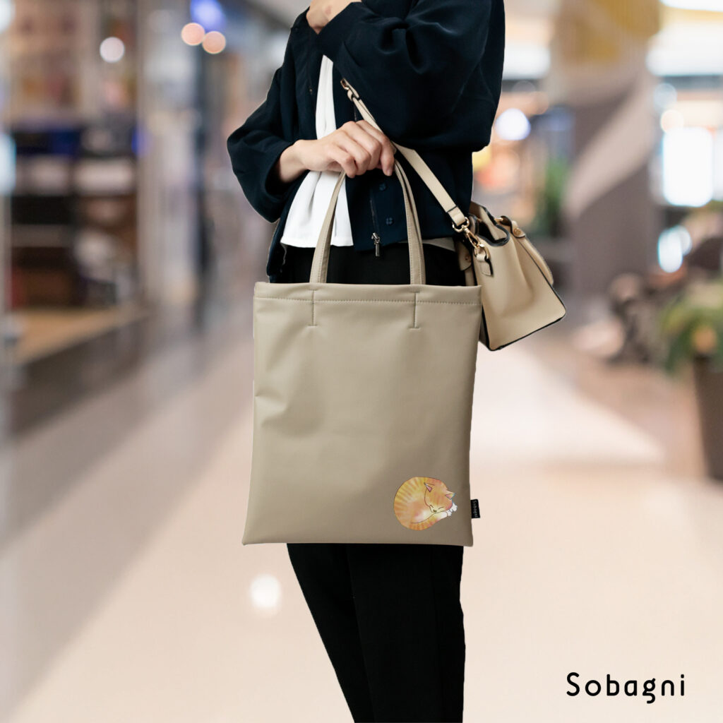 Sobagniで人気のオリジナル猫イラストを使用した、猫の日限定デザインのバッグ・小物も登場。