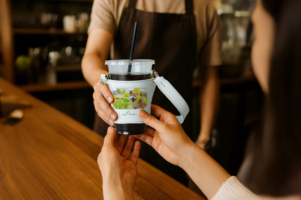 愛犬プリントの商品としては、通年販売しているカップホルダーもございます。こちらも「手が塞がりがちなお散歩の時に便利♪」と大変ご好評をいただいているアイテムです。