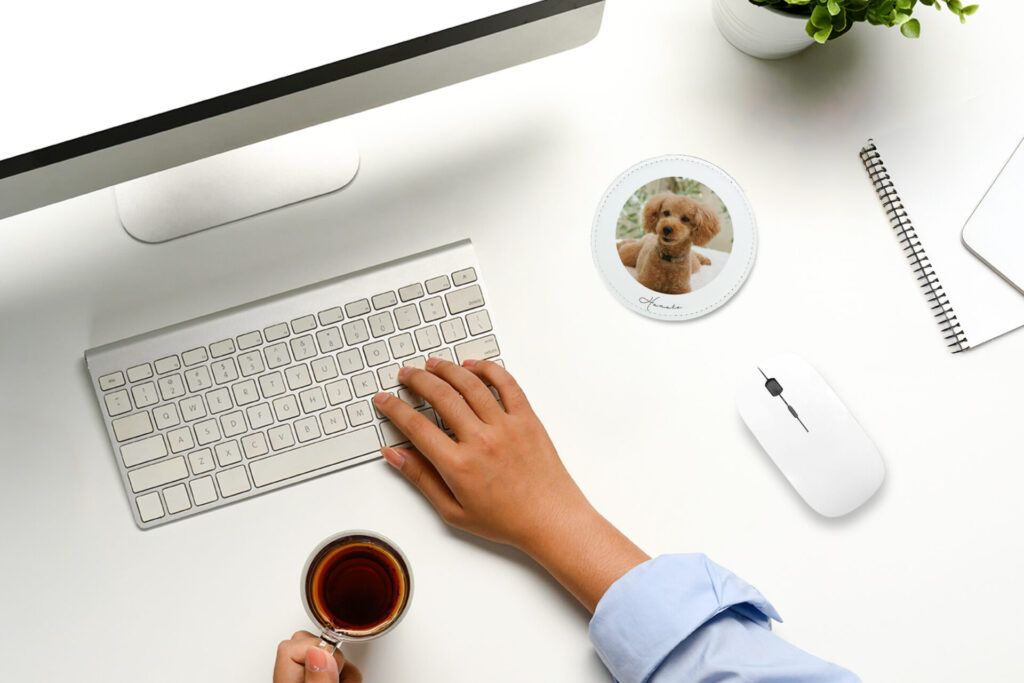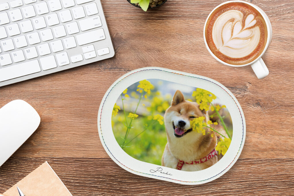 Sobagniの人気商品、マウスパッドとコースターに、いまだけ!愛犬の写真とお名前をプリントできちゃいます。
