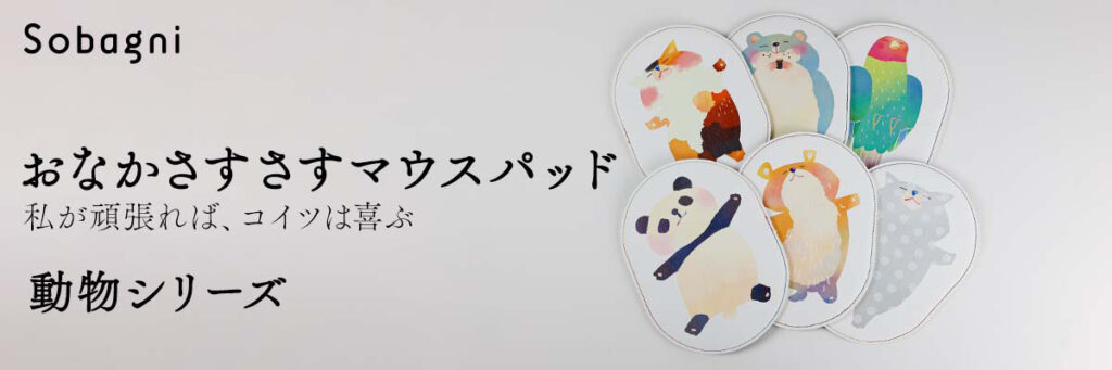 そんな、いつも頑張っているあなたに、ほっこり癒しをお届けするのがSobagniの「おなかさすさすマウスパッド」。へそ天の動物たちのイラストがかわいだけじゃない。マウスの操作がお腹をなでなでする仕草になってしまう、癒しの品です。