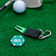 ソバニ公式 グリーンフォーク&名入れボールマーカーセット 名入れサービス オリジナル ゴルフ コンペ 景品 プレゼント ボールマーク 日本製 合皮 合成皮革 国産エシカル合皮 カラビナ付き 赤 シルバー グリーン 計5色 ヴィーガン