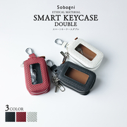 ソバニ公式スマートキーケースダブル キーケース エシカル合皮 アニマルフリー 大人 おしゃれ かっこいい プレゼント パンチング メンズ レディース エシカル サスティナブル 窓付き ギフト レッド ブラック ホワイト ヴィーガン