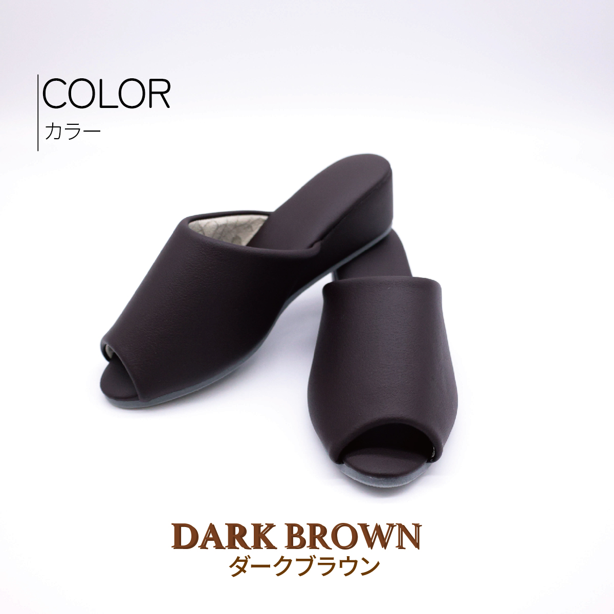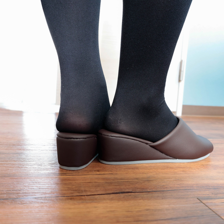 とても軽い「木のヒール」を使用しているので、ヒール部分が潰れず安定した履き心地です。底材には、フローリングをキズつけにくいEVA素材を使用しています。(EVAにはクッション性と適度な滑り止め効果があります。)